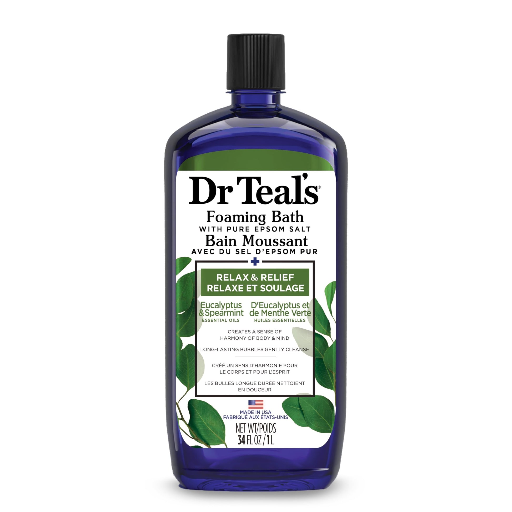 Dr Teal's Foaming Bath (Epsom Salt), Eucalyptus Spearmint, 34 Fluid Ounce