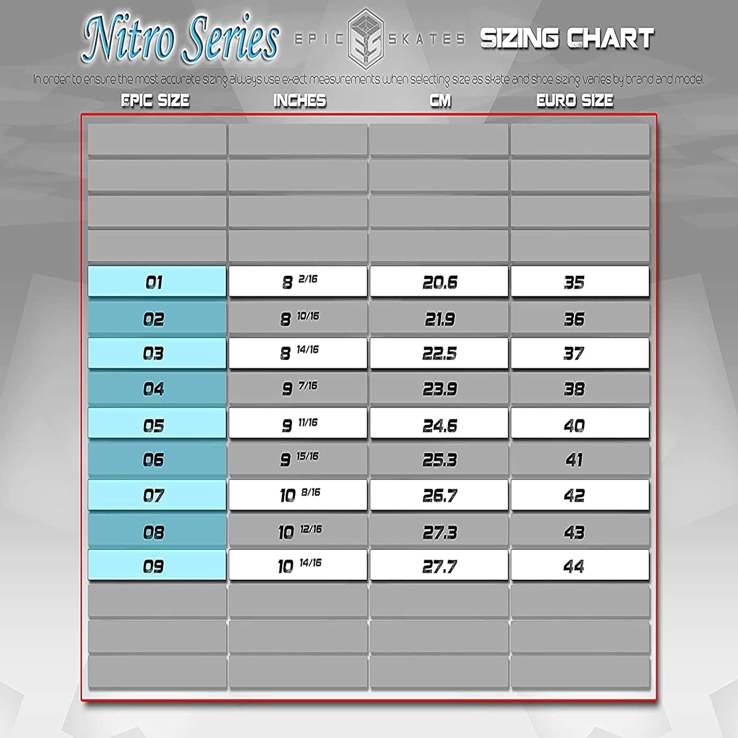 Epic Skates Epic Super Nitro Black Quad Speed Roller Skates Kids 9About this itemComes with 2 Pair of Laces - Gray & BlackEpic Super Nitro Boots - Black with Silver Trim - Comfortable Padded Collar - Classic Speed Skate Design w/ Speed Strap - Man-Made UppersEpic Lightweight Nylon Plates with Double Action Trucks & Fixed Toe stopsEpic ABEC-5 - 8mm Precision Speed BearingsEpic Nitro Indoor Outdoor Speed Skate Wheels - Black with Black Hubs