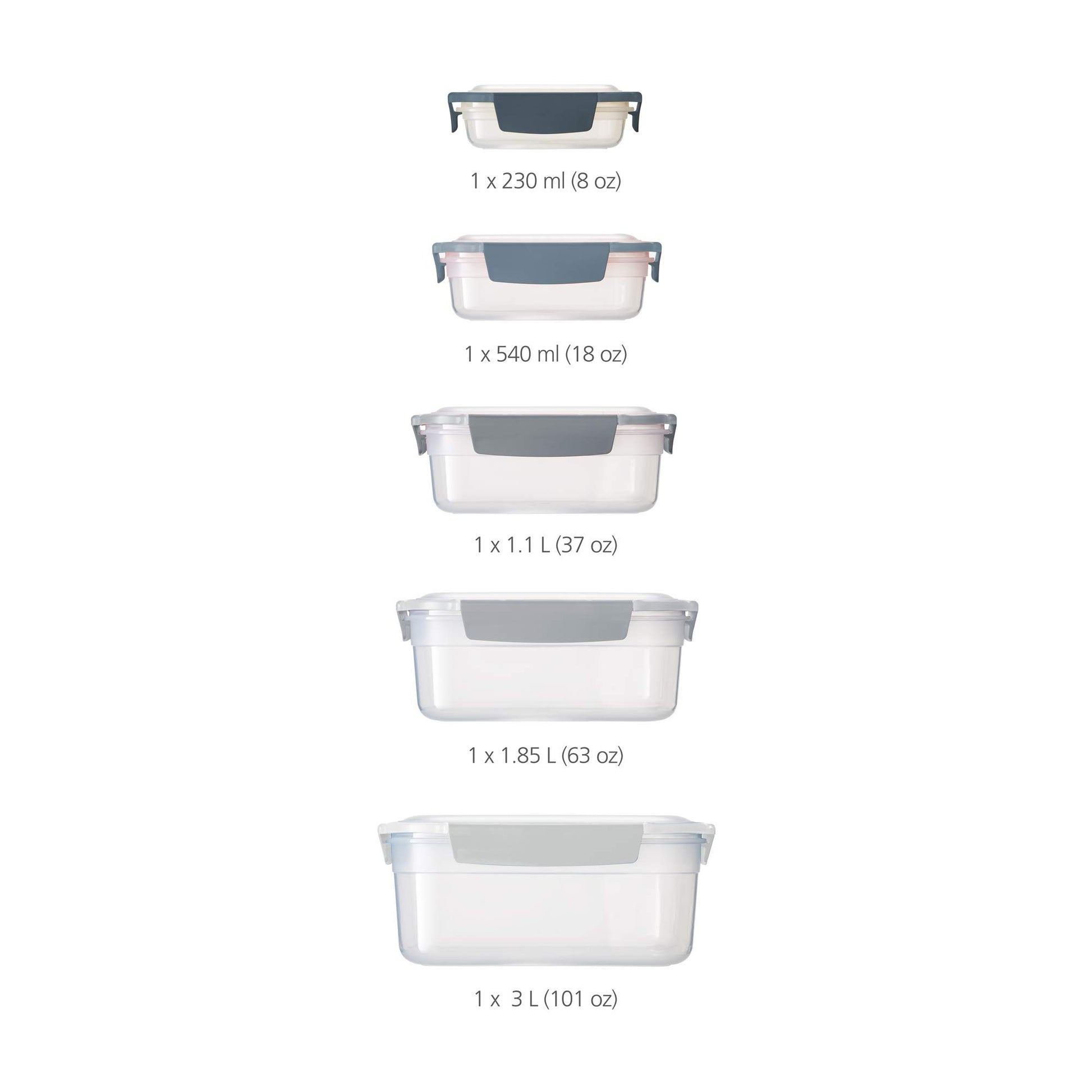 Containers and lids: freezer-safe, microwave-safe, and top rack dishwasher-safe. Bpa free and food safe. All products in the nest lock range fit together so you can build your own collection to suit your needs Set includes 1 of each containers: 8 fl. Oz (1 cups), 18 fl. Oz (2. 2 cups), 37 fl. Oz (4. 6 cups), 63 fl. Oz (7. 7 cups), 101 fl. Oz (12. 5 cups);