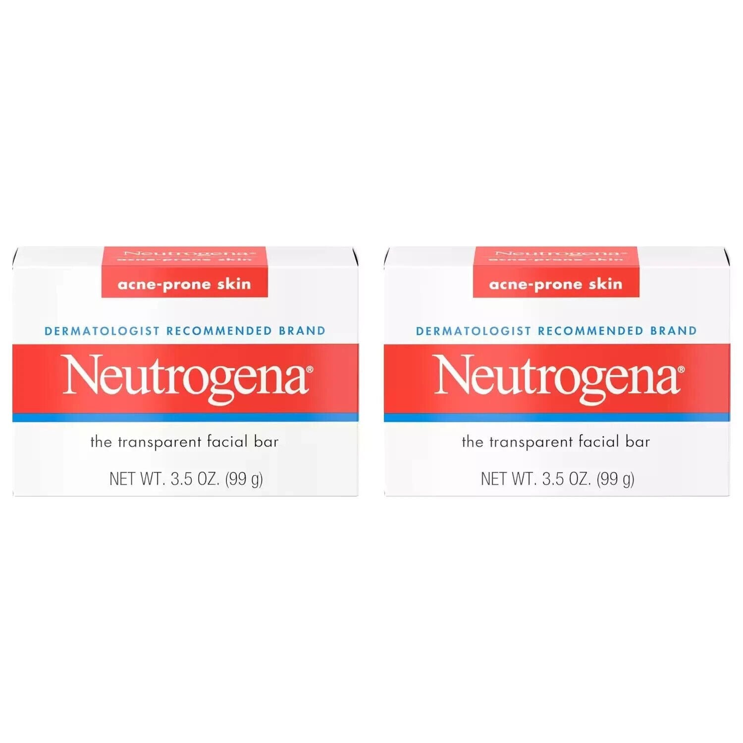 Neutrogena Transparent Facial Bar- Acne-Prone Skin Formula Soap 3.5oz:2 Pack NEW