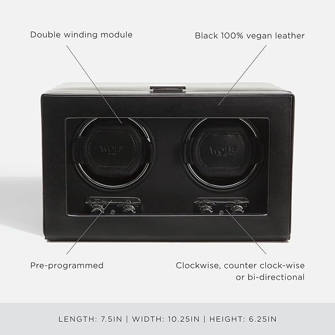 WOLF Heritage Double Winder with Glass Cover, Black - Secure Fit with Patented D